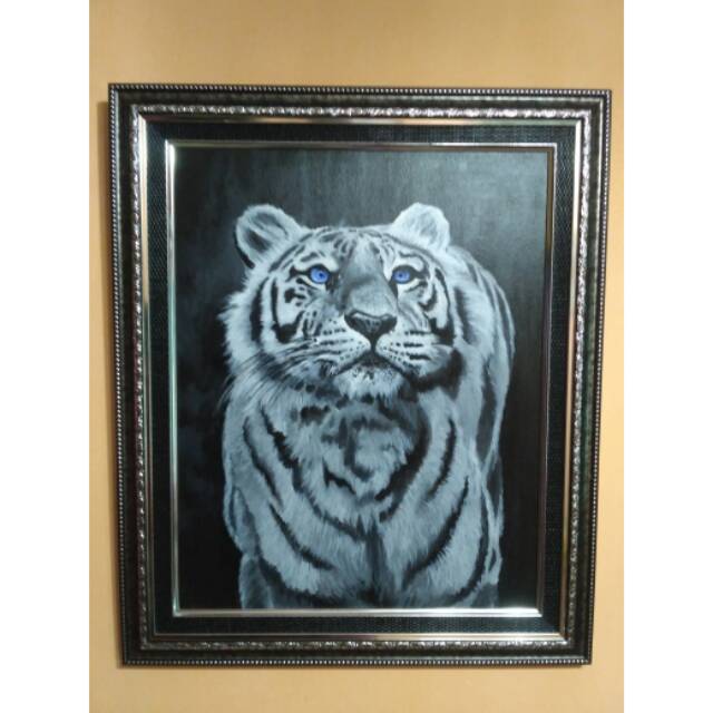 Jual Lukisan Harimau Putih Media Kanvas Ukuran 40x50 Cat Akrilik Shopee Indonesia