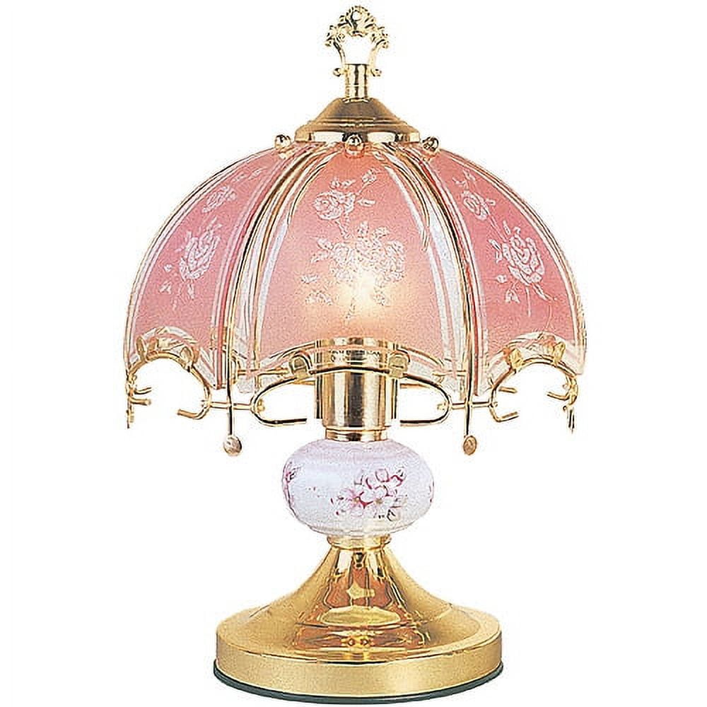 Ok Lighting 14 25 Goldtouch Lamp With Pink Glass Floral Theme Walmart Com